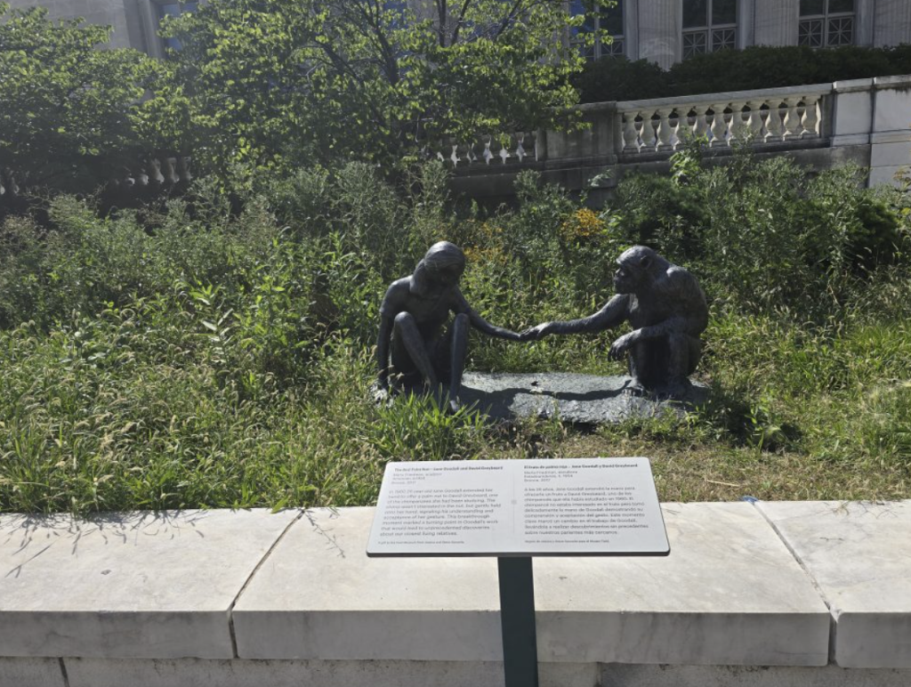 I’ve always admired Jane Goodall. Like her, I have always thought that primates are beautiful and so worthy of learning more about. We should be honored to have common ancestry with them, as we do with ALL mammals, by the way. When I was in Chicago several weeks ago, I walked my butt off in the museum campus along the shore and came upon this nondescript statue outside of one of the many grand buildings. I recognized the subject matter instantly. I didn’t know that she would be gone just a few weeks later, but I’m glad I decided to take pictures of it.