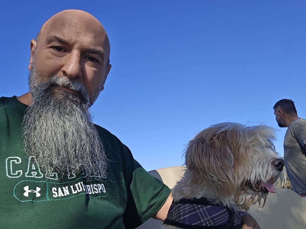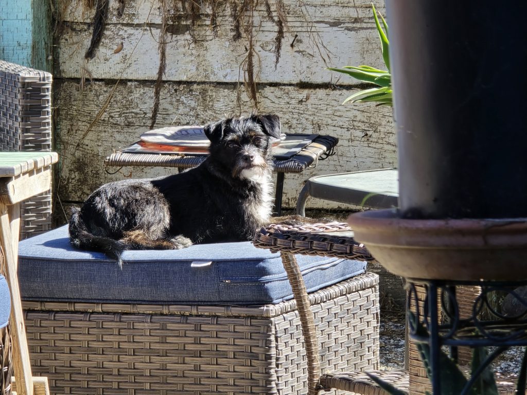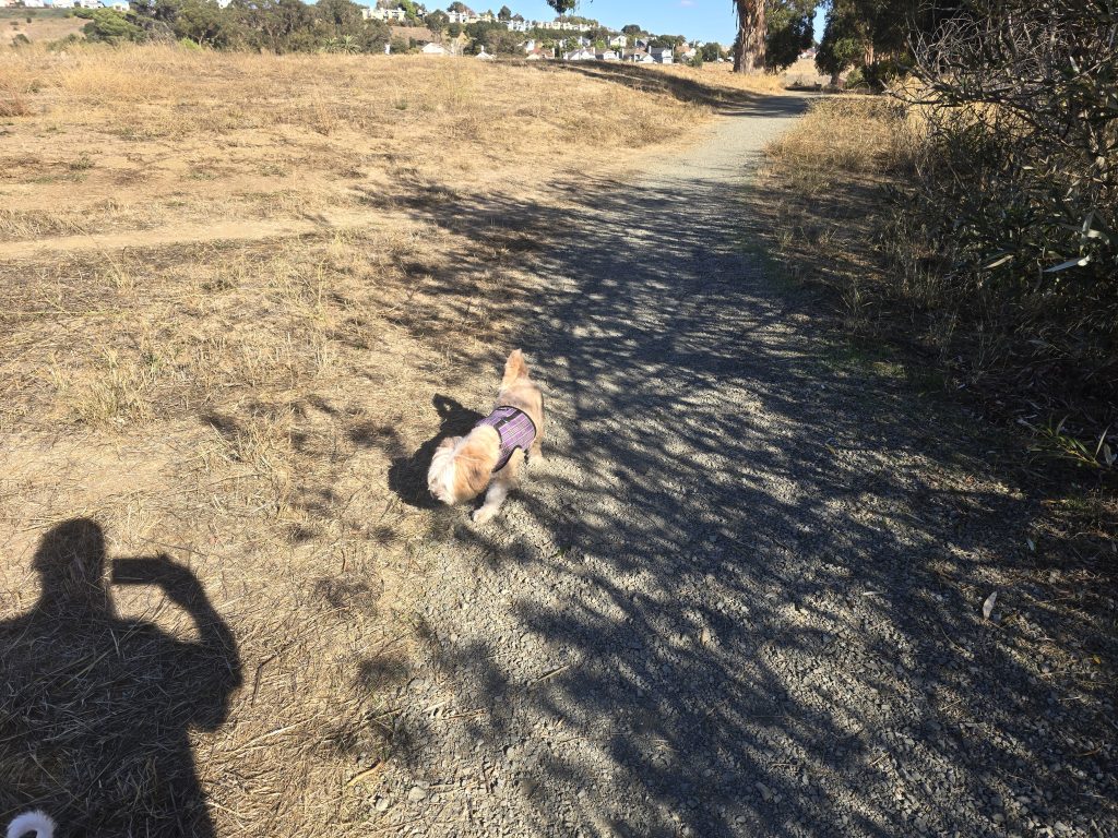 I love the picture, which appears like Bonnie is looking out at the water. She’s, of course, smelling it and enjoying the light breeze. She’s so amazing off-leash. She just follows my voice and takes her time wandering around and enjoying sniffing.