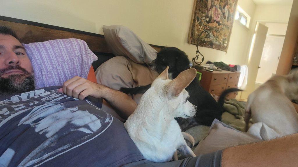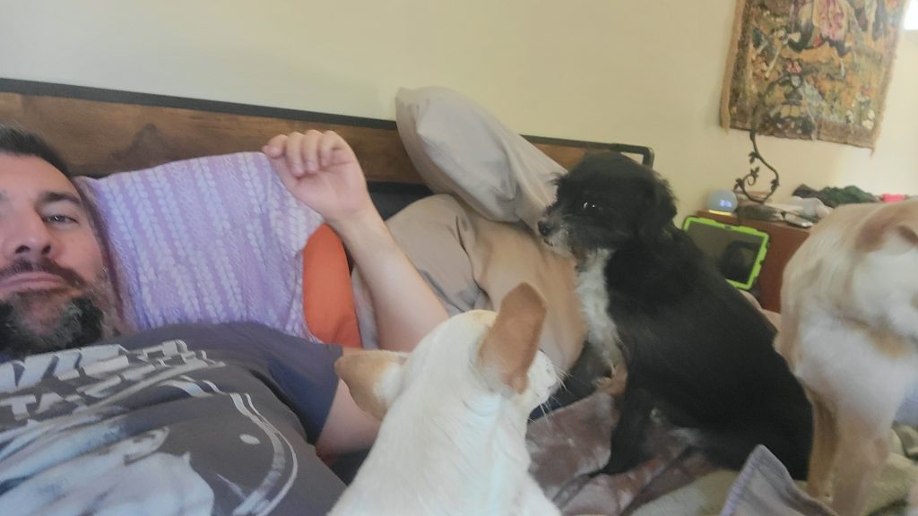 This is what happens when Shea doesn’t wake up on time. The troops run in to wake him up when they get the zoomies after I feed them.