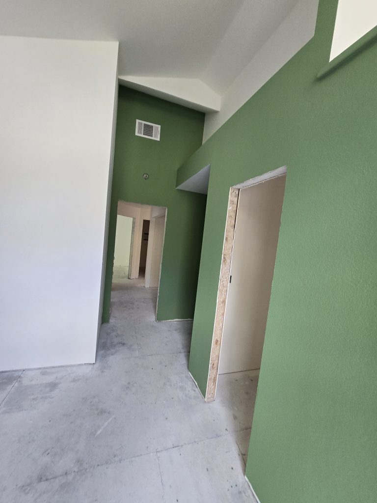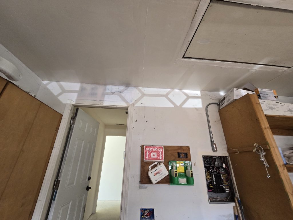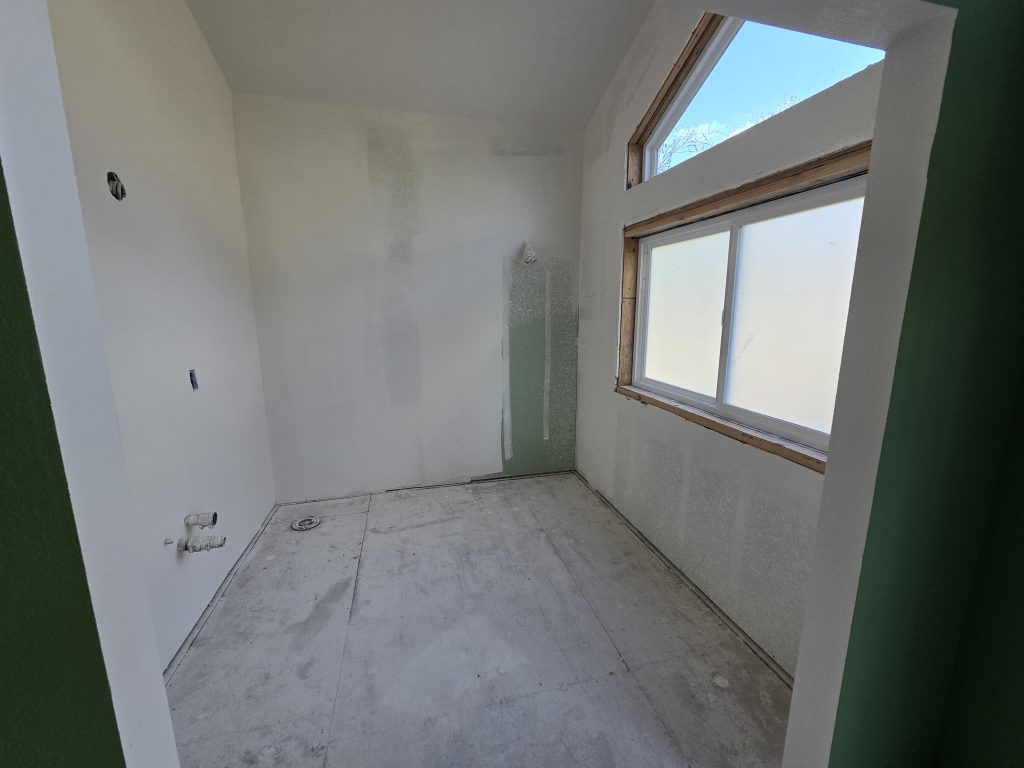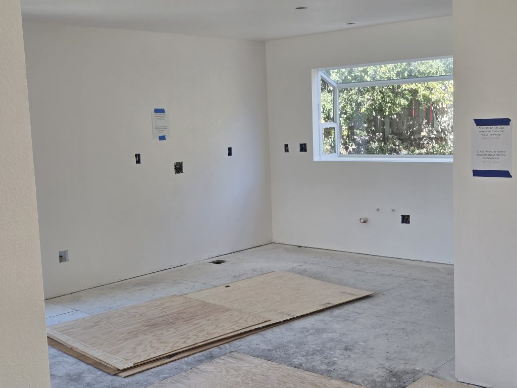 We thought the floors were being installed, but it looks like some of the pieces of the subflooring were just being replaced. What’s staged in the garage might be flooring or more siding. It’s hard to tell.